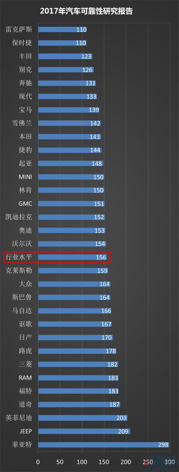 蓋世汽車記者通過整理發(fā)現(xiàn),在今年的可靠性研究報告中,可靠性排名前五豪華品牌占據(jù)三席,分別是保時捷、雷克薩斯、奔馳。其中,保時捷、雷克薩斯以100輛車輛中有110個問題,并列成為可靠性第一的品牌。另外兩席為普通大眾品牌豐田和別克,且豐田從去年的第四名升至第三名?,F(xiàn)代、梅賽德斯-奔馳、捷豹是今年榜單中前十名的新加入成員,而GMC(通用)、Ram、謳歌和Lincoln(林肯)則從前十名中出局??煽啃詨|底的5個品牌中,菲亞特克萊斯勒(FCA)旗下品牌竟占四席。另外一家是日系品牌英菲尼迪。