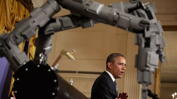 巴拉克?奧巴馬(Barack Obama)給他的繼任者留下了一句臨別贈(zèng)語(yǔ)。在唐納德?特朗普(Donald Trump)預(yù)言自己將成為“上帝創(chuàng)造的最偉大的就業(yè)制造者”一天前,離任的美國(guó)總統(tǒng)似乎像是宴會(huì)上的幽靈,警告稱(chēng)“自動(dòng)化的無(wú)情步伐將淘汰很多就業(yè)崗位”。