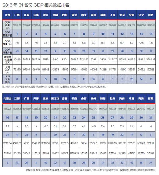 31個省份公布的2016年GDP總量,展示出了不一樣的區(qū)域格局。