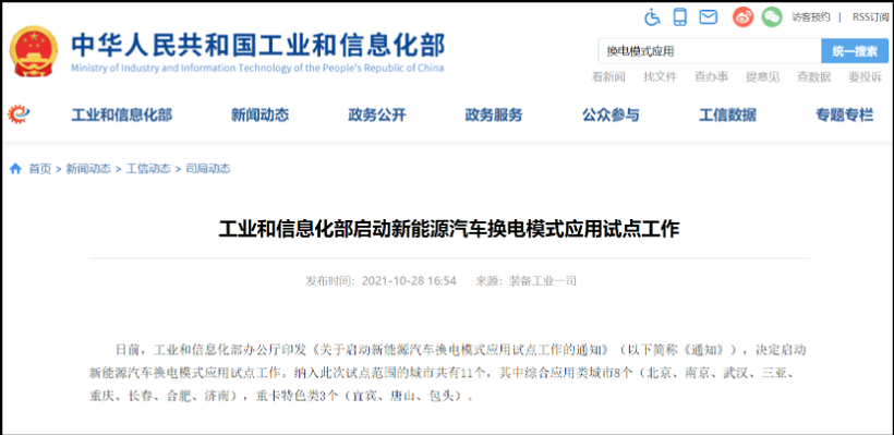 工信部啟動(dòng)新能源汽車換電模式應(yīng)用試點(diǎn) 推廣換電車輛超10萬輛