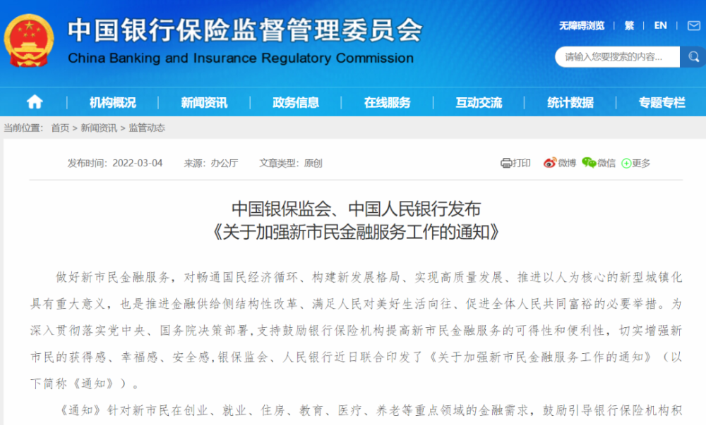 為支持鼓勵(lì)銀行保險(xiǎn)機(jī)構(gòu)提高新市民金融服務(wù)的可得性和便利性,切實(shí)增強(qiáng)新市民的獲得感、幸福感、安全感,銀保監(jiān)會(huì)、人民銀行近日聯(lián)合印發(fā)了《關(guān)于加強(qiáng)新市民金融服務(wù)工作的通知》(以下簡(jiǎn)稱《通知》)。